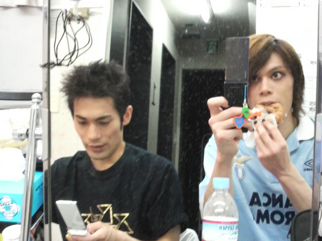 写真は楽屋でYOHくんが盗み撮りした写真だよ。今回の楽屋はYOHとふっきーの間です。
